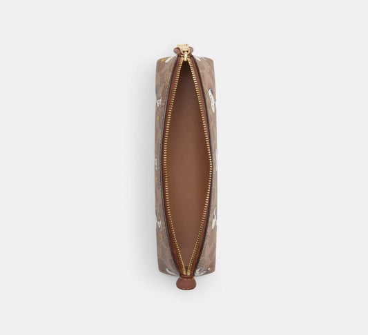 PRE ORDER-Coach X Peanuts Pencil Case In Signature Canvas With Snoopy Print