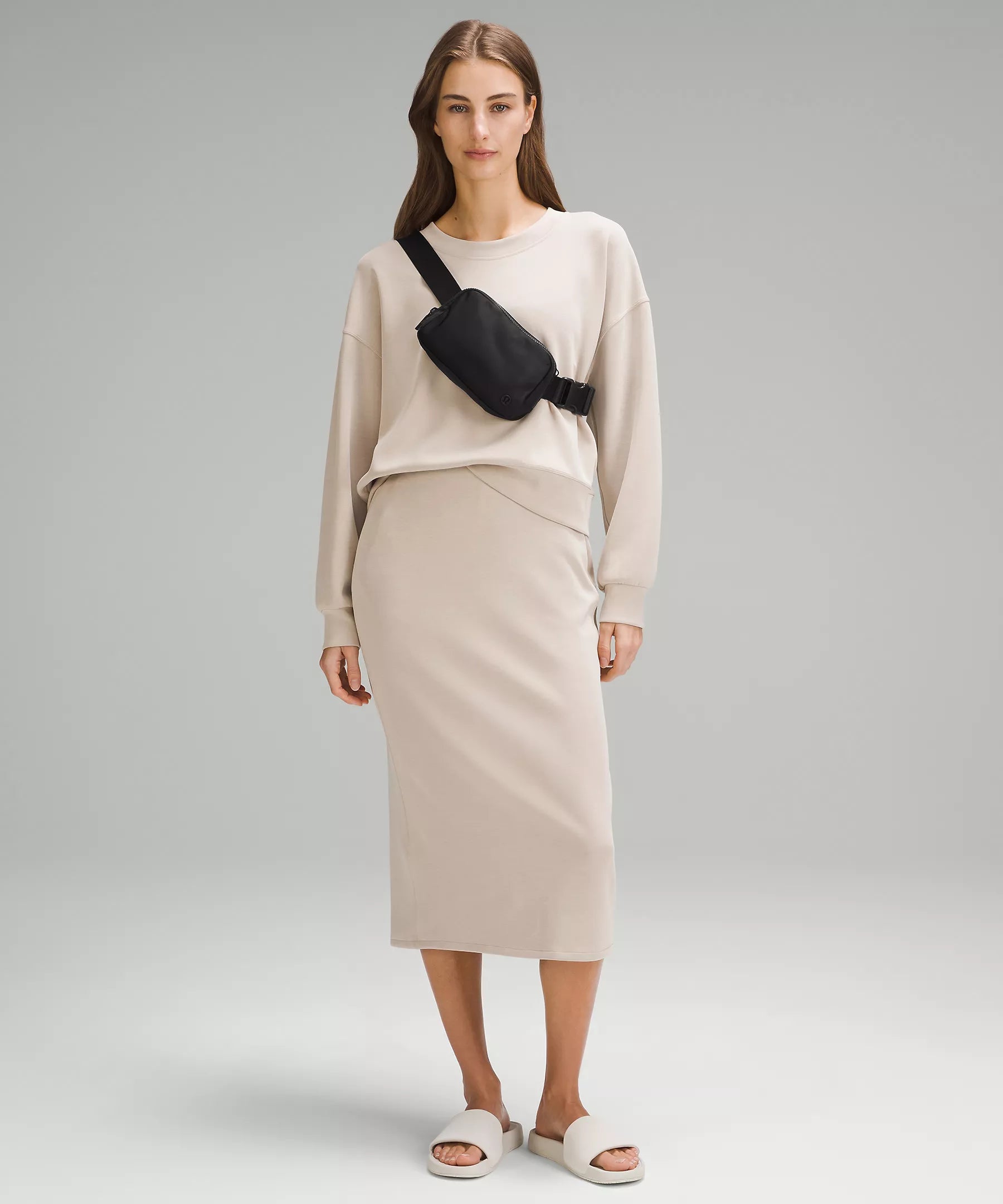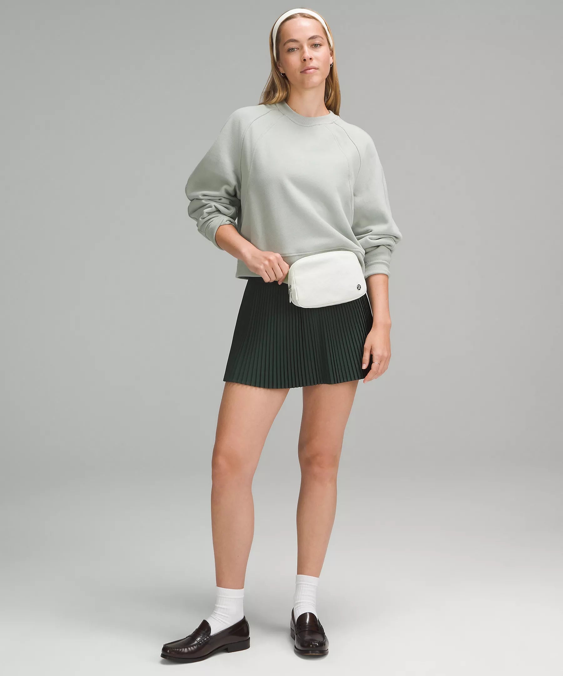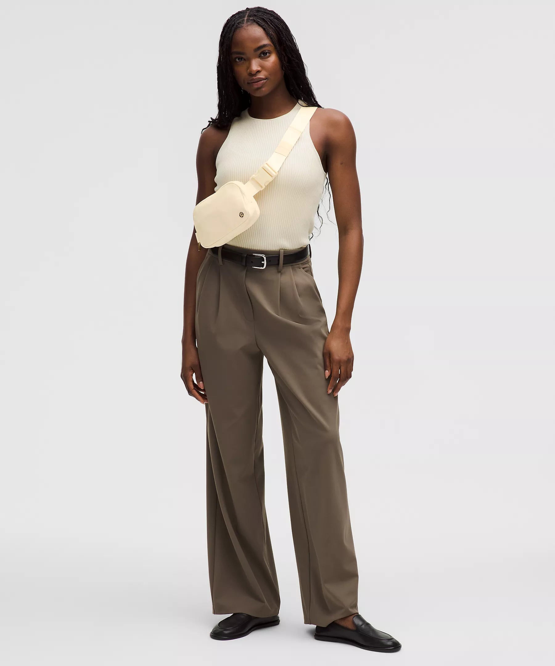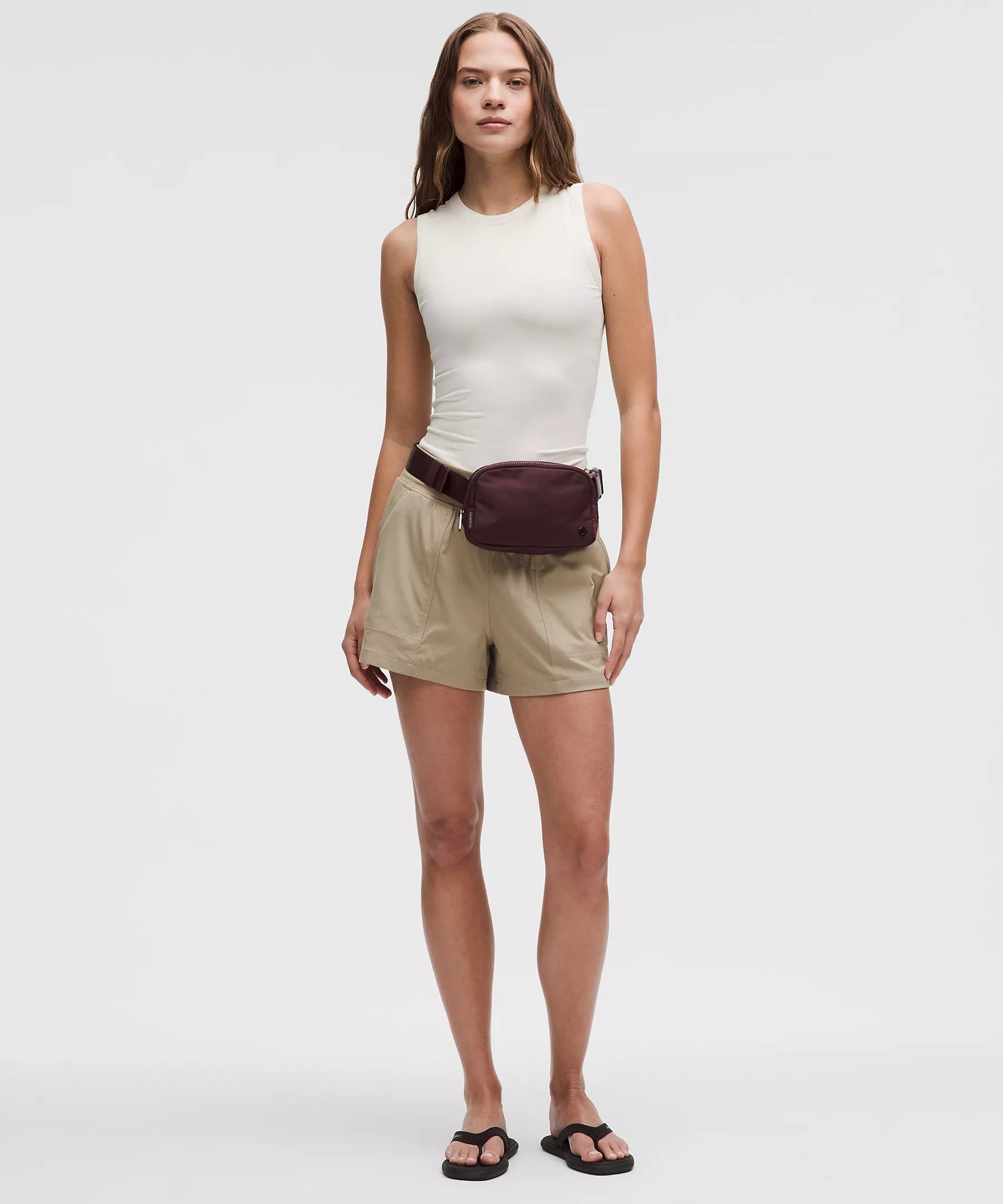- Una vez que encuentres el ajuste perfecto, mete el exceso de la correa de la bolsa del cinturón en los bucles elásticos