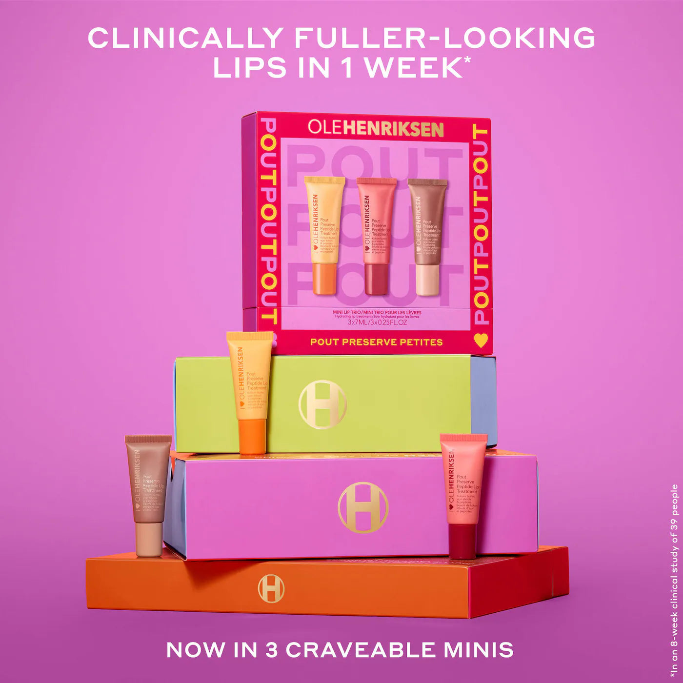 Qué es: Un mini trío de edición limitada de los tratamientos labiales Pout Preserve Peptide más vendidos que rellenan rápidamente los labios con hidratación para unos labios de aspecto más voluminoso.