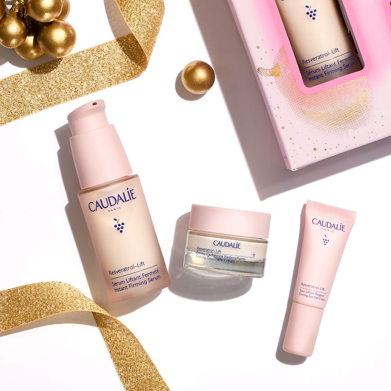 Qué es: Una rutina de tres pasos que reafirma y levanta visiblemente la piel, suaviza las arrugas y deshincha los ojos con la alternativa patentada de Caudalie al retinol.