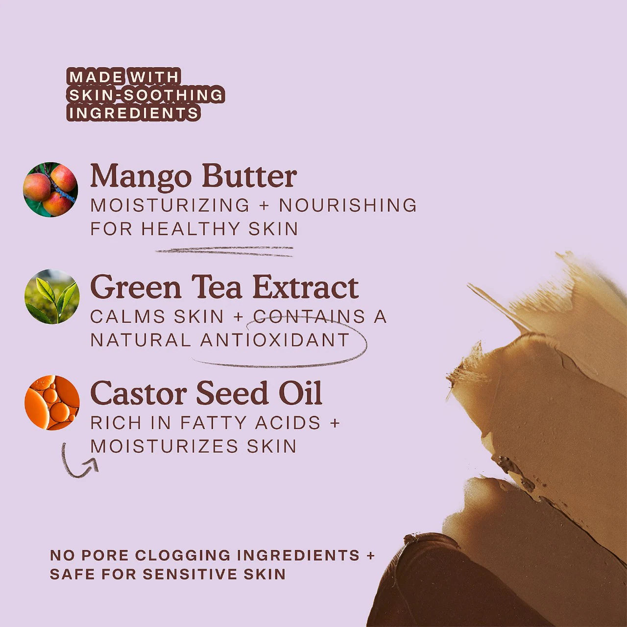 - Aceite de semilla de ricino: rico en ácidos grasos y ayuda a humectar la piel.